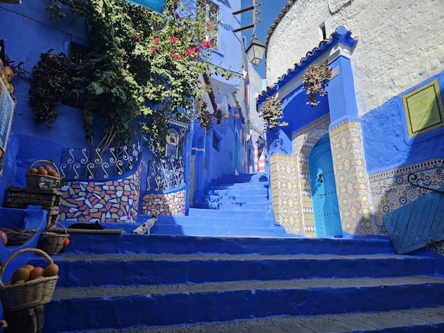 La médina de Chefchaouen est un labyrinthe de rues étroites et de petits escaliers. Contrairement aux grandes villes comme Marrakech ou Fès ici le rythme est beaucoup plus lent. On ne se sent pas pressé par la foule. Chaque coin de rue est une surprise. On y voit des portes en bois massif avec des décorations en fer forgé. Les murs ne sont pas simplement bleus ils utilisent toutes les nuances de cette couleur. On passe du bleu ciel au bleu marine ou au bleu turquoise en quelques pas. Les habitants décorent souvent le devant de leur maison avec des pots de fleurs colorés. Le contraste entre le rouge des fleurs et le bleu des murs est magnifique pour les yeux. En marchant dans la médina on entend le son de l'eau qui coule. La ville est riche en sources naturelles ce qui permet d'avoir de nombreuses fontaines décorées de mosaïques. La propreté de la ville est aussi remarquable. Les habitants prennent soin de leur environnement car ils savent que leur ville est un trésor.