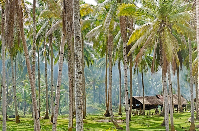 En remontant vers le nord de Siargao, on découvre un visage plus sauvage et authentique de l'île. La route traverse la forêt de palmiers de Maasin, célèbre pour son palmier incliné au-dessus d'une rivière cristalline, avant d'atteindre les piscines naturelles de Magpupungko. À marée basse, des bassins d'eau turquoise se révèlent entre les rochers, offrant des spots de baignade spectaculaires face aux vagues de l'océan. Plus loin encore, le village de Pacifico est un havre de paix pour ceux qui cherchent à fuir l'animation de General Luna. Les plages y sont immenses et presque désertes, bordées par une jungle épaisse. C'est aussi la porte d'entrée pour explorer le lagon de Sugba, un immense labyrinthe d'eau émeraude entouré de collines verdoyantes, où l'on peut naviguer en paddle dans un silence absolu, seulement troublé par le passage occasionnel d'une pirogue traditionnelle.